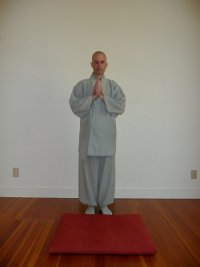 - jako element ceremoniału w Ośrodku Zen, np. podczas wchodzenia i wychodzenia z sali Dharmy, na powitanie nauczyciela itp.