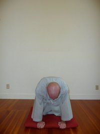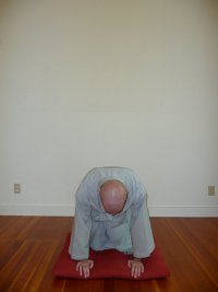 - Na zakończenie ostatniego, sto ósmego pokłonu powróć do pozycji klęczącej, a następnie z tej pozycji pokłoń się jeszcze raz do pozycji pełnego pokłonu (głowa dotyka maty) - nazywa się to "półpokłonem".