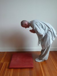 Tu możesz zobaczyć film przedstawiający sposób wykonywania pokłonów - zwróć jednak uwagę, że jest to forma stosowana w Korei, w której w końcowej fazie pokłonu unosi się ręce do góry. W naszej Szkole nie unosimy rąk do góry, lecz leżą one na macie zwrócone dłońmi do góry. Na filmie nieco inny jest również sposób wykonania "półpokłonu" po ostatnim pokłonie.